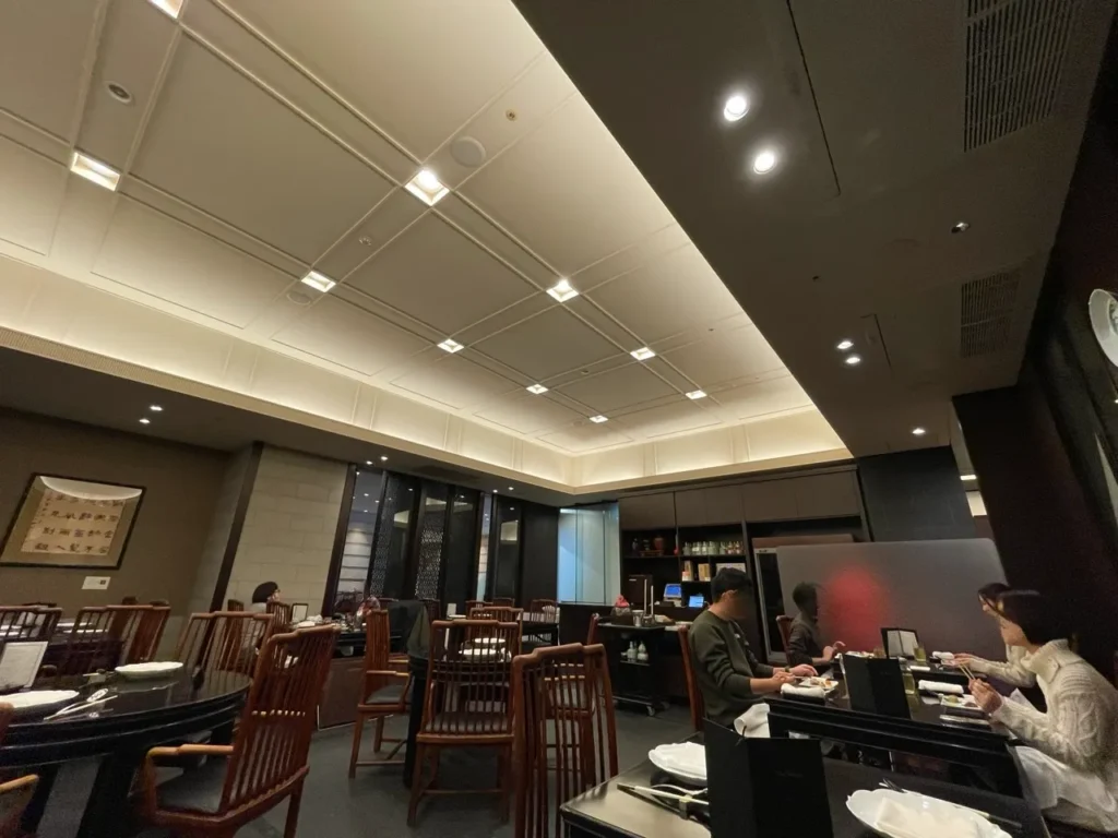 The restaurant occupies an airy, polished space designed to balance discretion with prestige. Under the glow of soft lighting, the clinking of porcelain teacups replaces the city’s clamor outside, lending a rare calm to Tokyo’s busiest shopping district.
