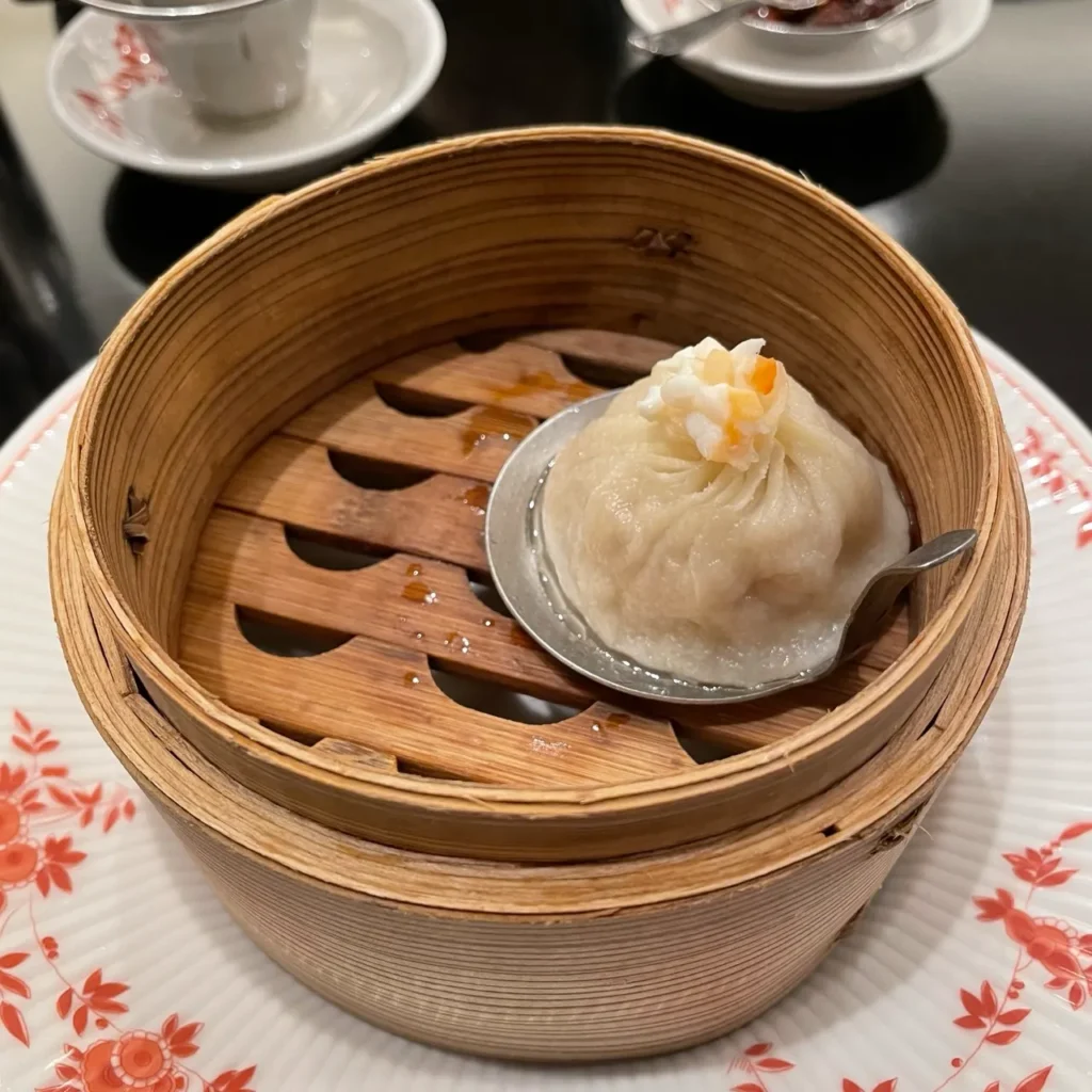 The Crab Meat Xiao Long Bao (蟹肉入り特製小籠包) reinforces Akasaka Rikyu’s command over balance. The dumpling’s skin is sufficiently taut to hold in the savory broth but pliant enough to yield at the first touch of teeth. The filling—fresh, sweet crab suspended in soup—offers one of the most satisfying mouthfuls of the entire course.