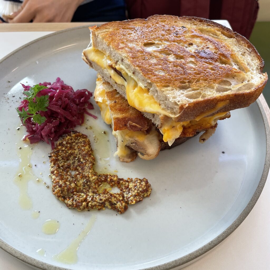 The Grilled Cheese Sandwich is a blissful delight with rich, melty cheese oozing from within. The bread is grilled to a golden crisp on the outside, while the cheese inside is smooth and creamy, with hints of tomato and ham adding depth and balance to the flavor.