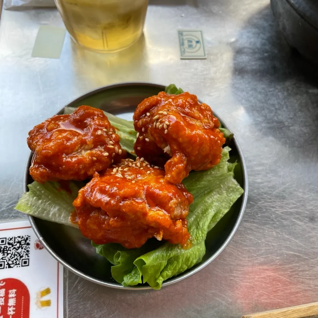 Next up was the Mini Yangnyeom Chicken (¥480), coated in a glossy red gochujang glaze. This sweet-and-spicy Korean fried chicken hits that perfect flavor balance that makes you want to reach for the next bite.