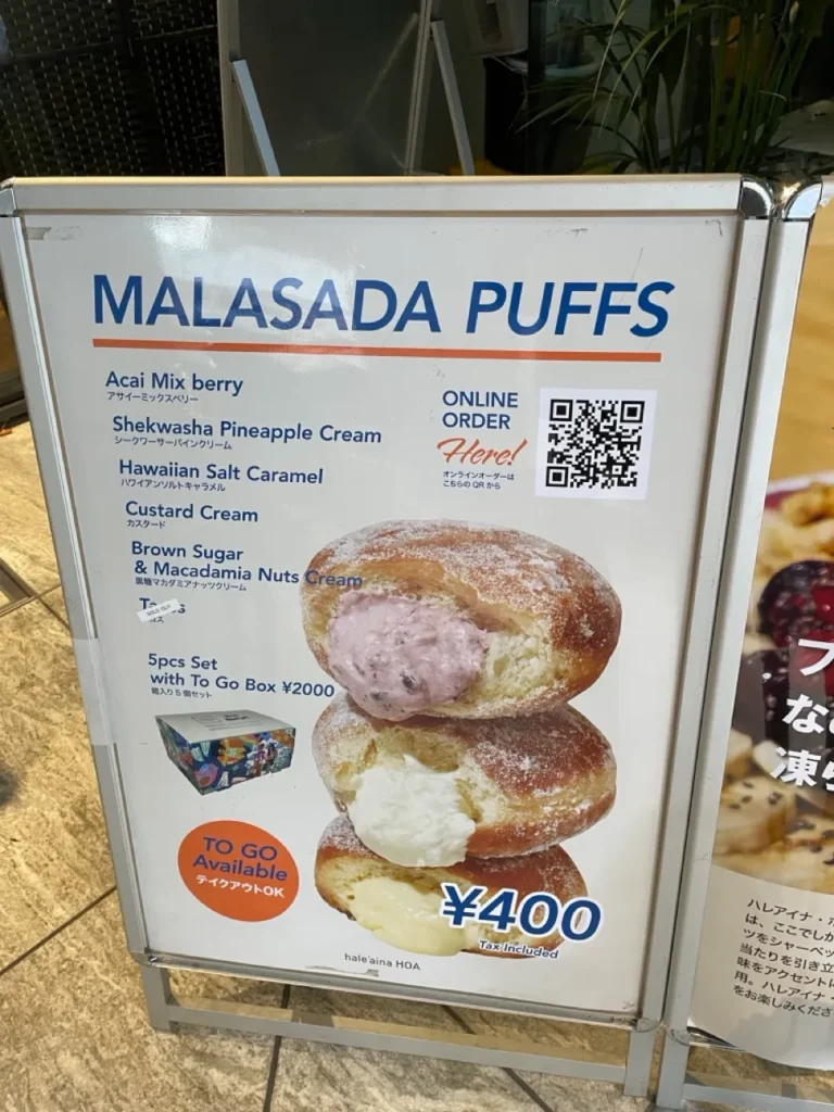 The restaurant also offers MALASADA PUFFS, a popular dessert inspired by Hawaii’s traditional malasada donuts. Filled with rich cream and featuring a crispy-yet-fluffy texture, these puffs use ingredients sourced from both Okinawa and Hawaii, making them a favorite takeout or dessert choice.