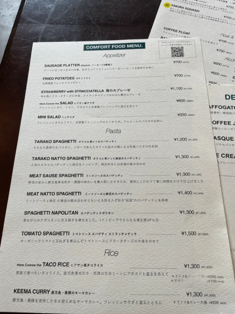 The other star of the café is the Americano (アメリカーノコーヒー), best enjoyed after your meal. Made with lightly roasted Ethiopian beans, it offers a delicate, floral aroma. The first sip brings a citrus-like acidity, which slowly gives way to subtle sweetness as it cools. It gently refreshes the palate after the flavorful taco rice—like sunlight easing through clouds.
