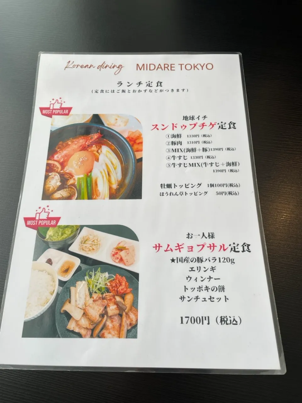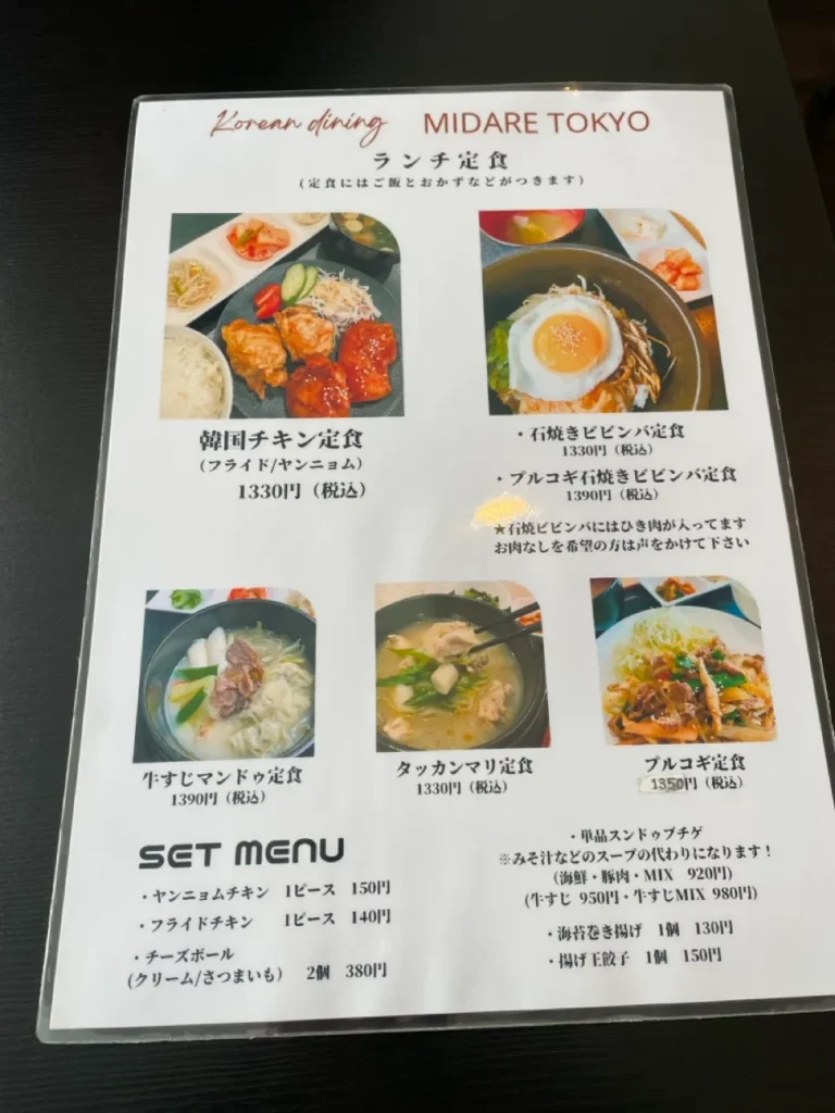 With about 20 seats and only table seating, the restaurant feels intimate yet open. It’s perfect for solo diners, couples, or small families. Lunch prices range from ¥1,000 to ¥1,999 — ideal for a slightly upgraded Korean lunch experience in Tokyo.