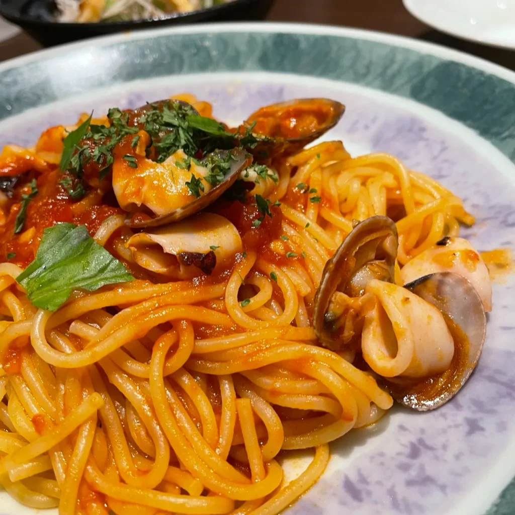 The star of the night was the Vongole Rosso with Spear Squid (ヤリイカのボンゴレロッソ), a vibrant dish that glows with the color of sun-ripened tomatoes. The sauce bursts with tangy richness, perfectly complementing the natural sweetness of the squid and the subtle brininess of clams. Every bite is a textural delight—the bouncy squid, tender clams, and chewy handmade pasta create a mix that’s simply addictive. It’s no wonder diners call it “the perfect squid vongole” and “impossible to stop eating.”