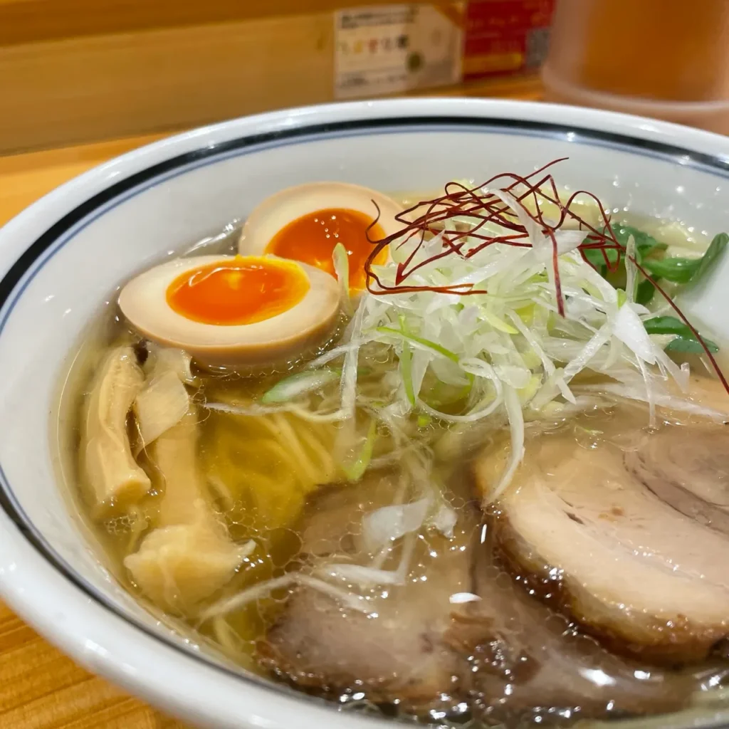 As dusk falls over Roppongi and neon lights begin to glow, I step inside. At the ticket machine, I select the Kuroobi Shio Ramen くろおびラーメン塩 (¥1,300) and take a seat at the counter. Despite its popularity (with soup occasionally selling out early), I’m lucky to get a spot without much wait on a weekday evening. The staff’s polite and gentle demeanor immediately puts me at ease. Soft background music plays, and soon a delicate aroma of kelp begins to waft through the air.